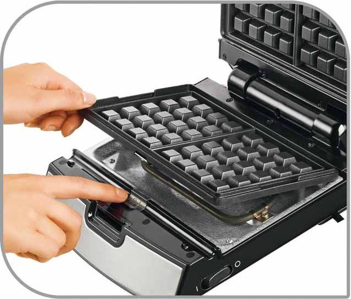 De Tefal SW854D heeft nog veel meer te bieden. Het beschikt over handige functies zoals een aan-uit schakelaar voor veilig gebruik en LED-verlichting die aangeeft wanneer de Snack Collection op de juiste temperatuur is. Bovendien zorgt de Tefal anti-aanbaklaag ervoor dat je lekkernijen gelijkmatig bruin worden en dat de platen eenvoudig schoon te maken zijn. De platen zijn afneembaar en kunnen moeiteloos worden vervangen door andere, afhankelijk van je culinaire creaties.